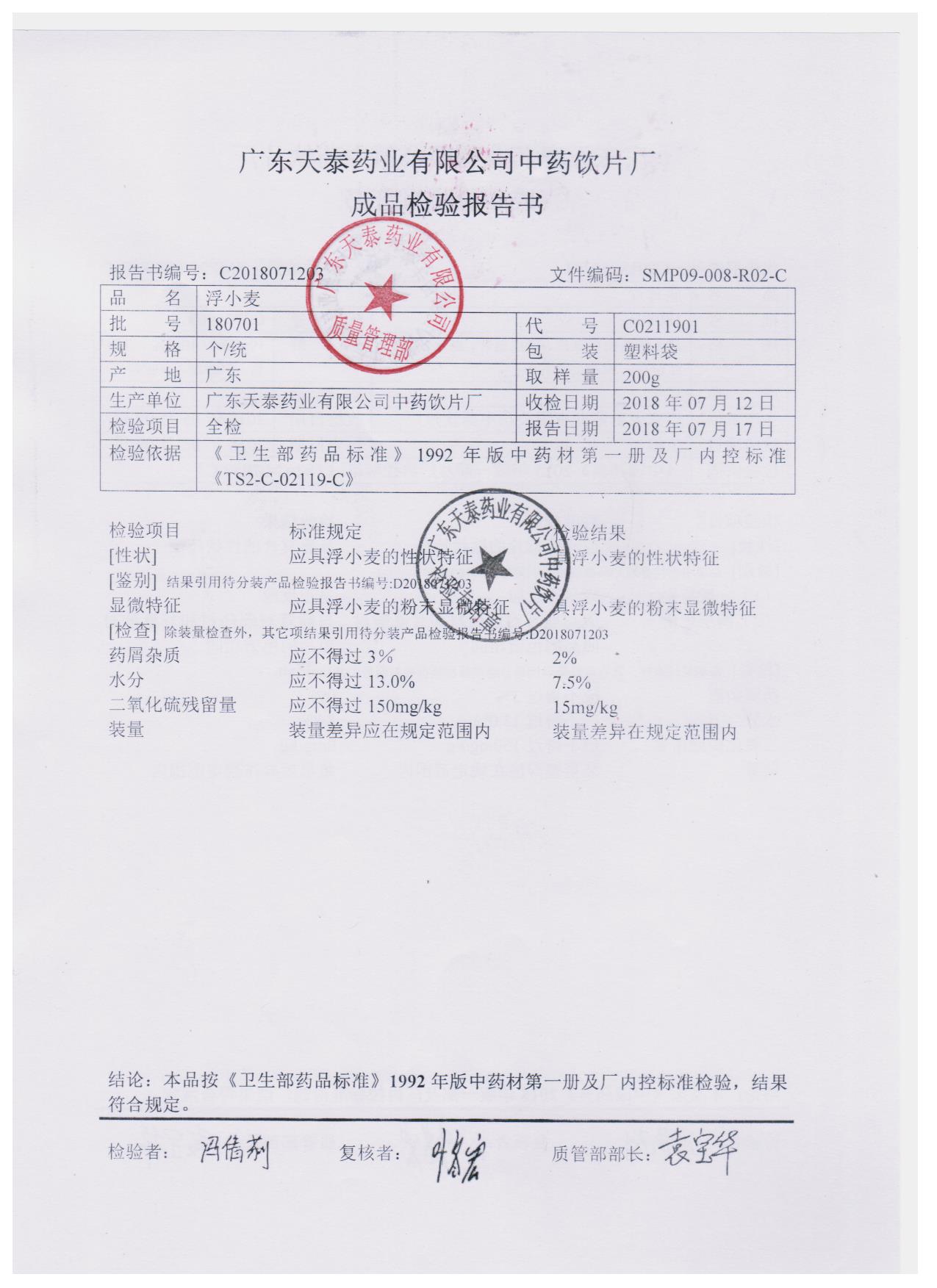 药检报告