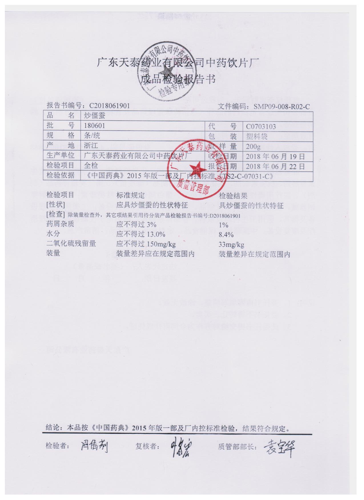 药检报告