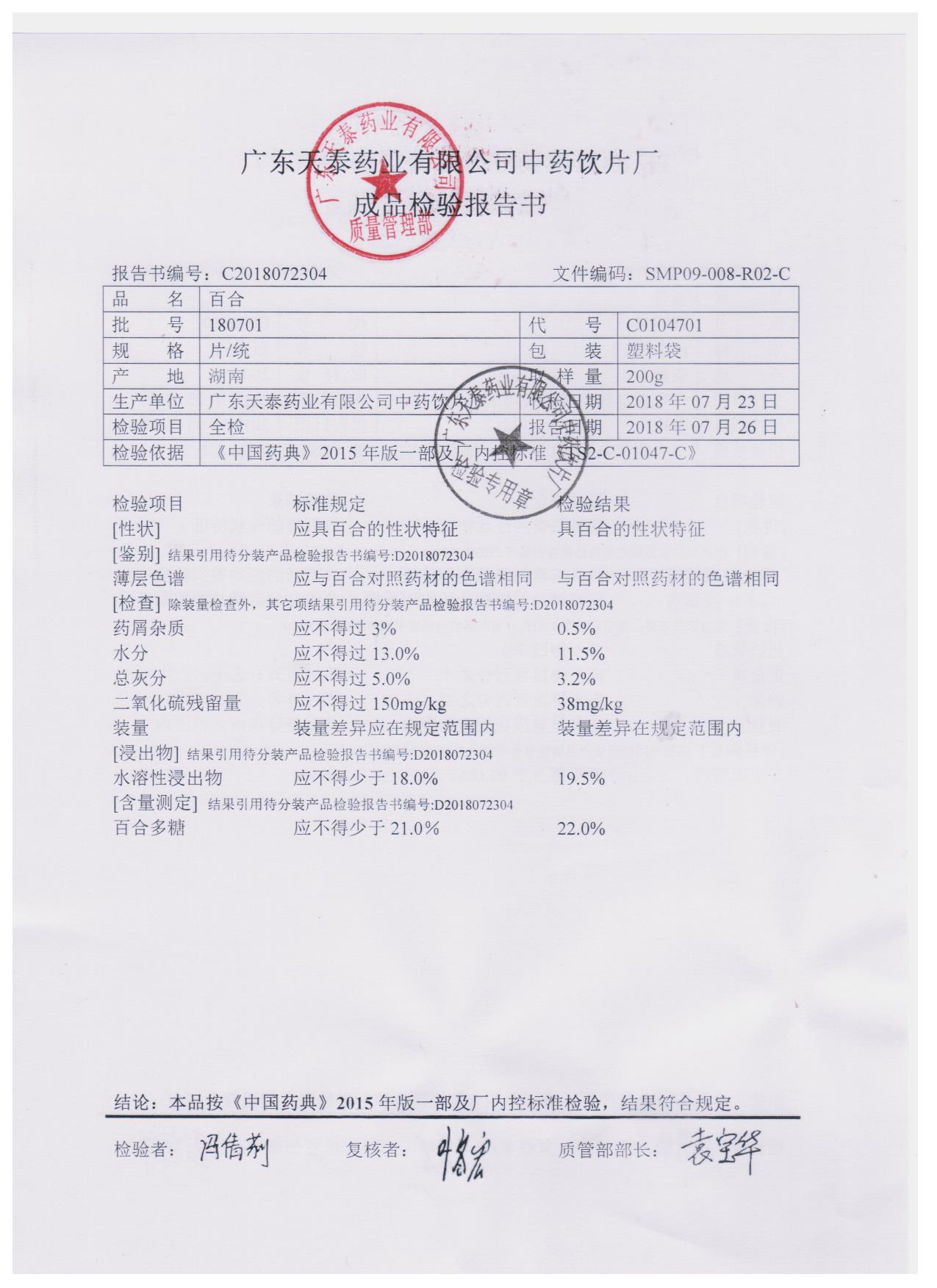药检报告