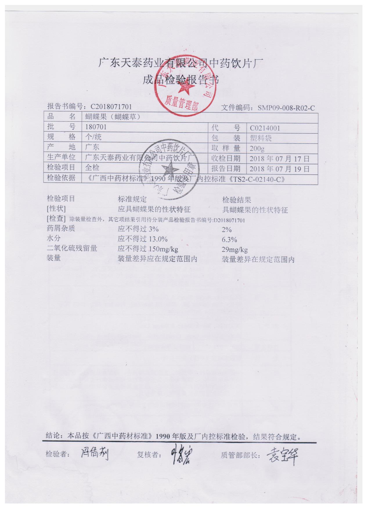 药检报告