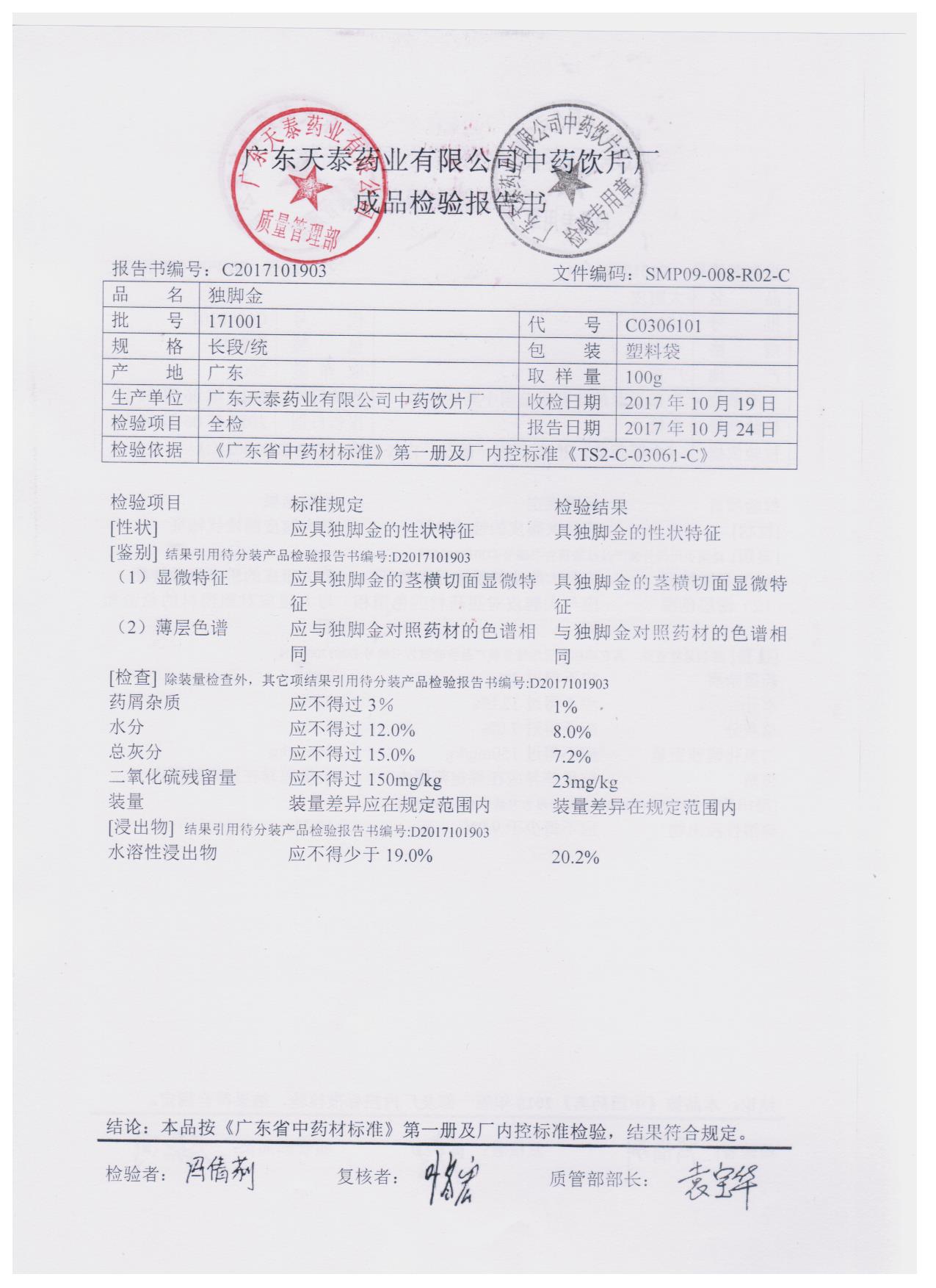 药检报告