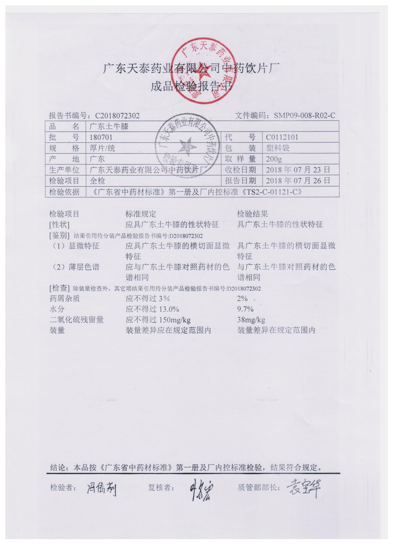 药检报告