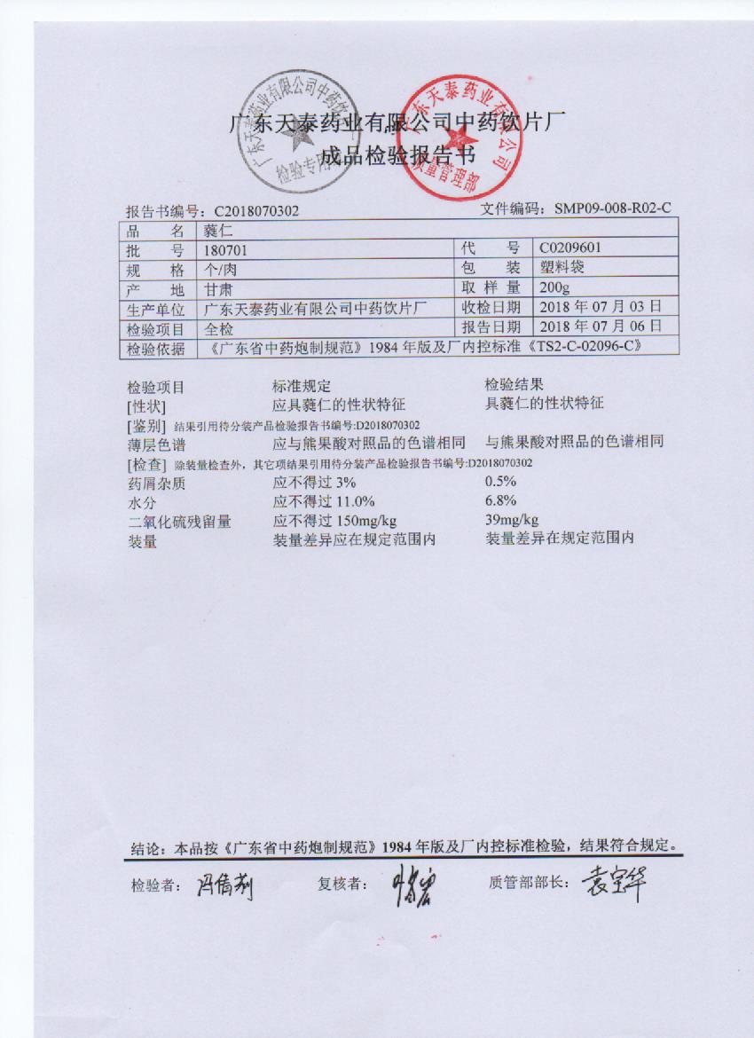 药检报告