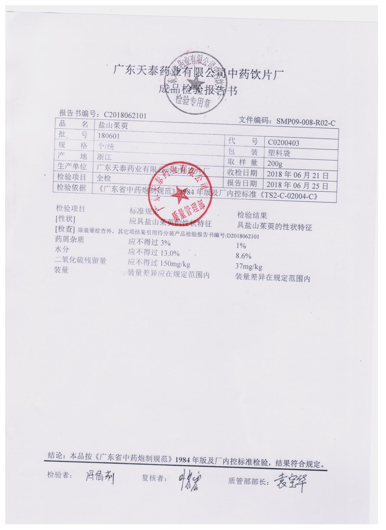 药检报告