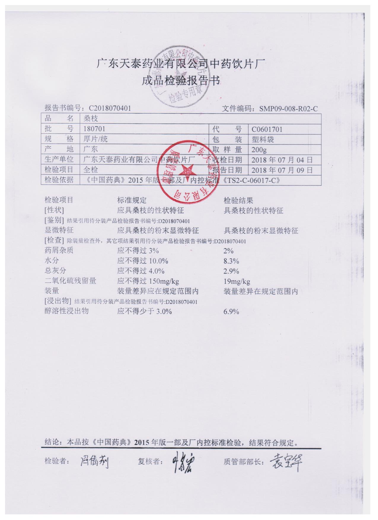 药检报告