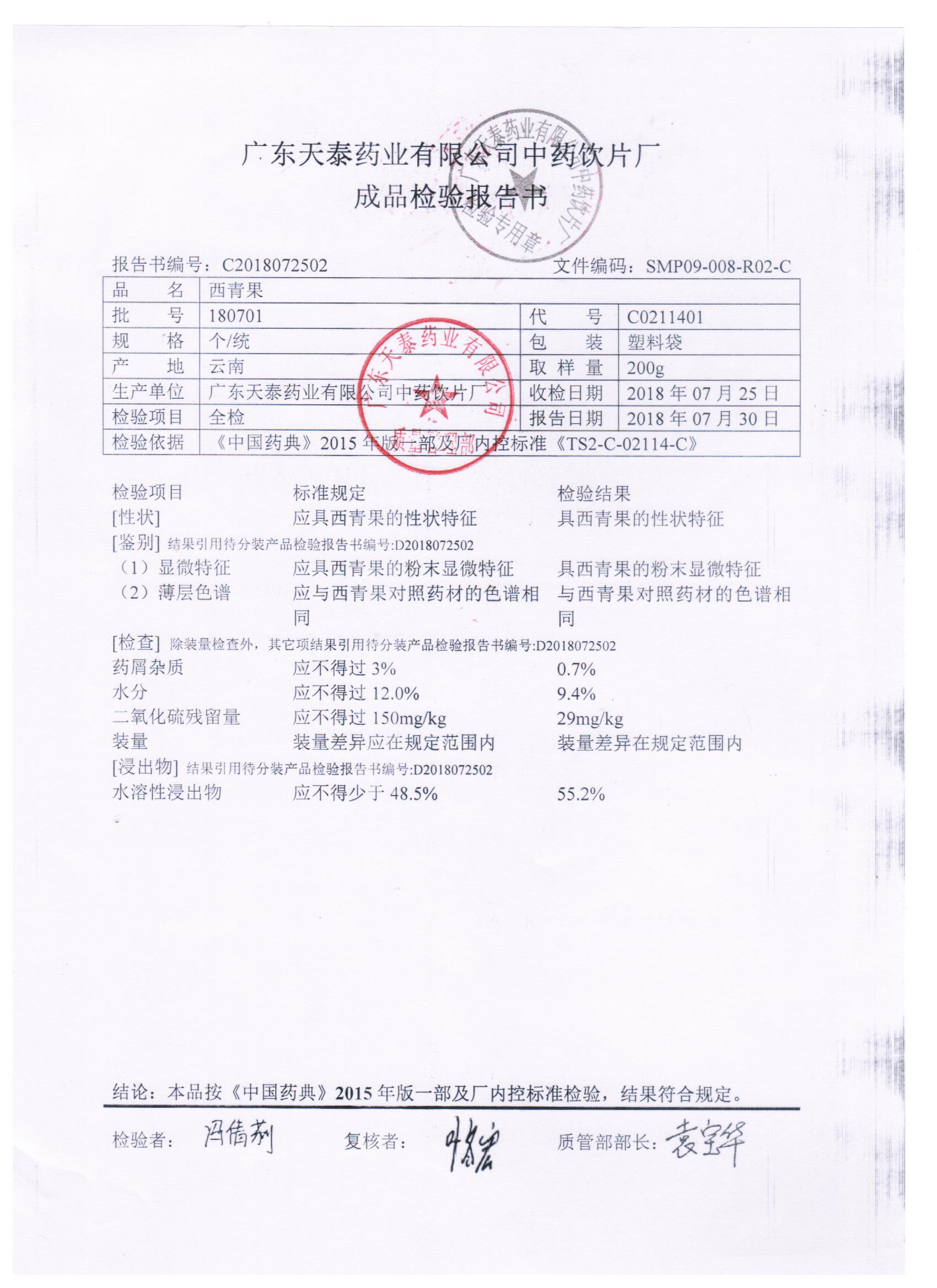 药检报告