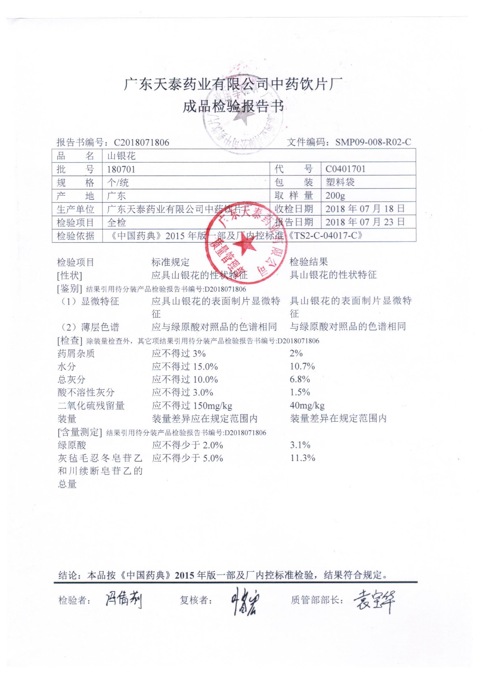 药检报告
