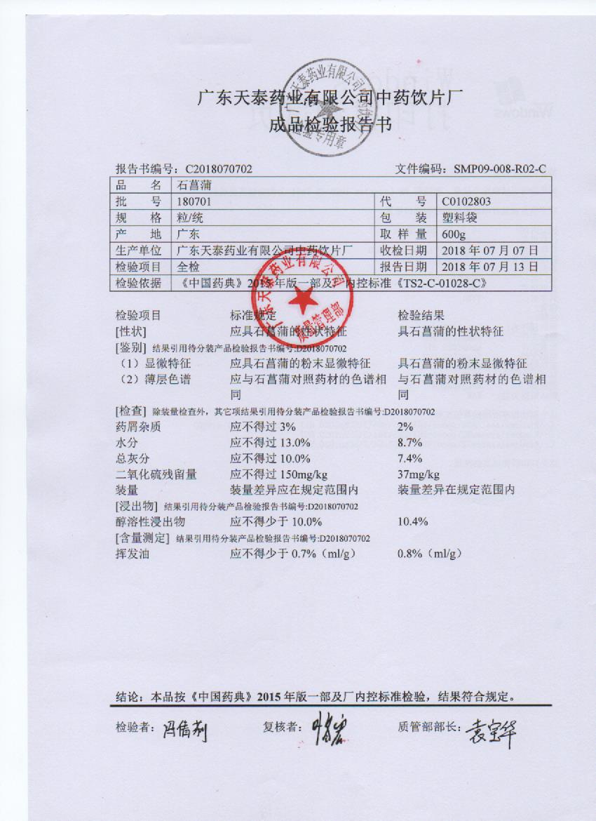 药检报告