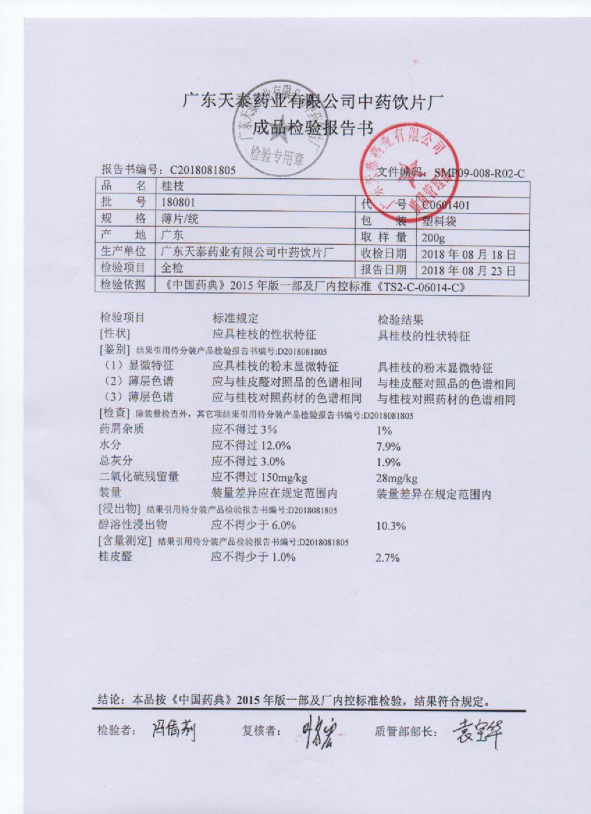 药检报告