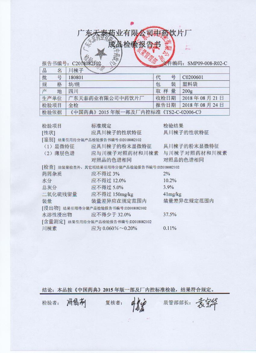 药检报告
