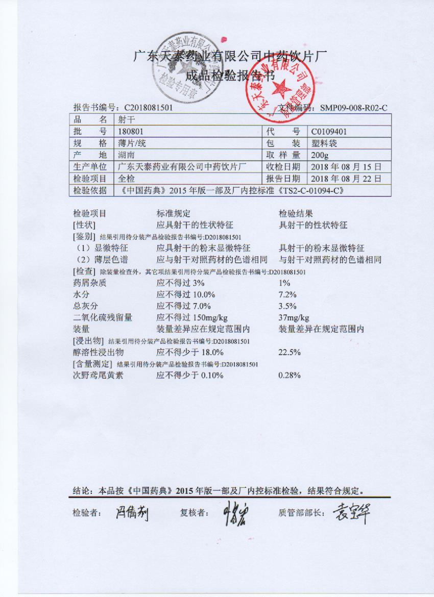 药检报告
