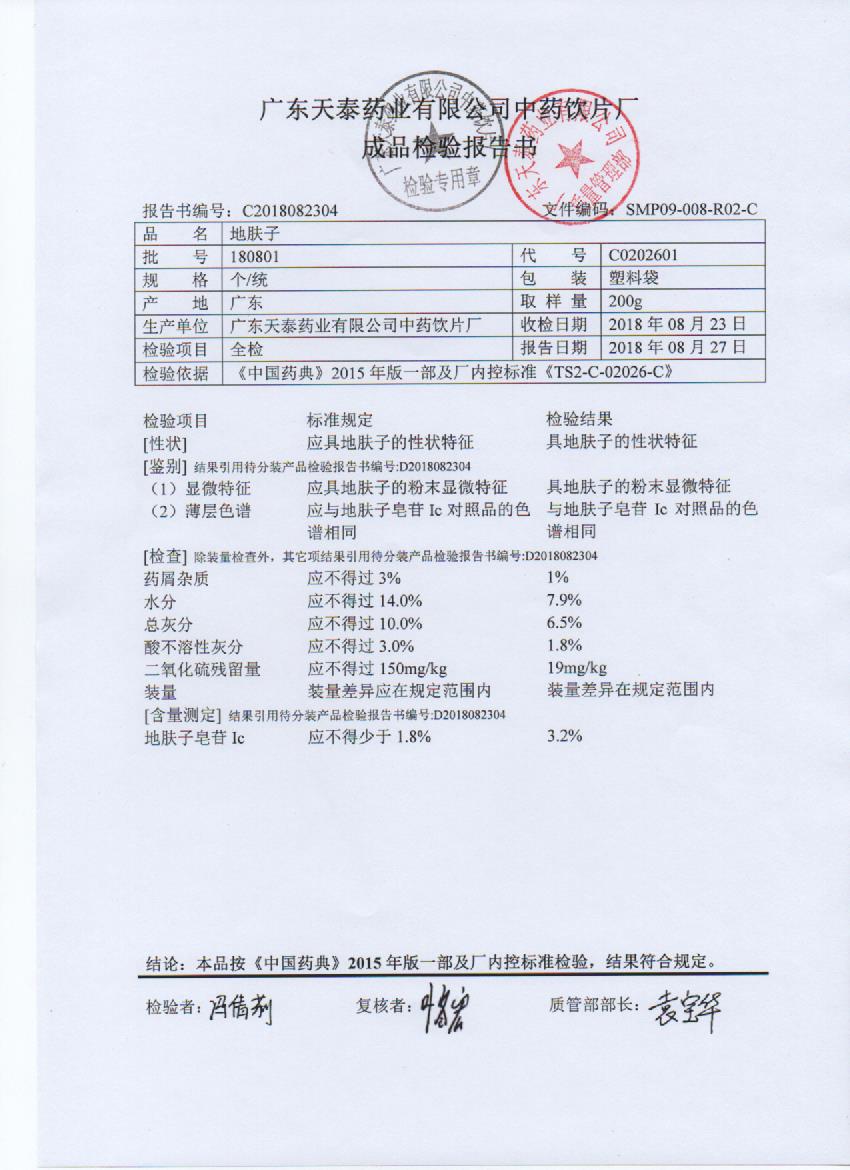 药检报告
