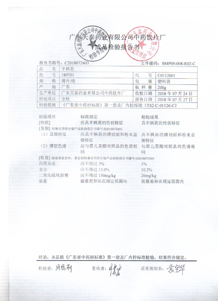药检报告