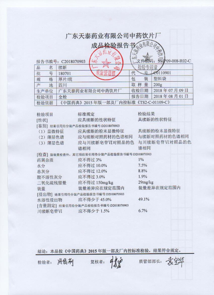 药检报告