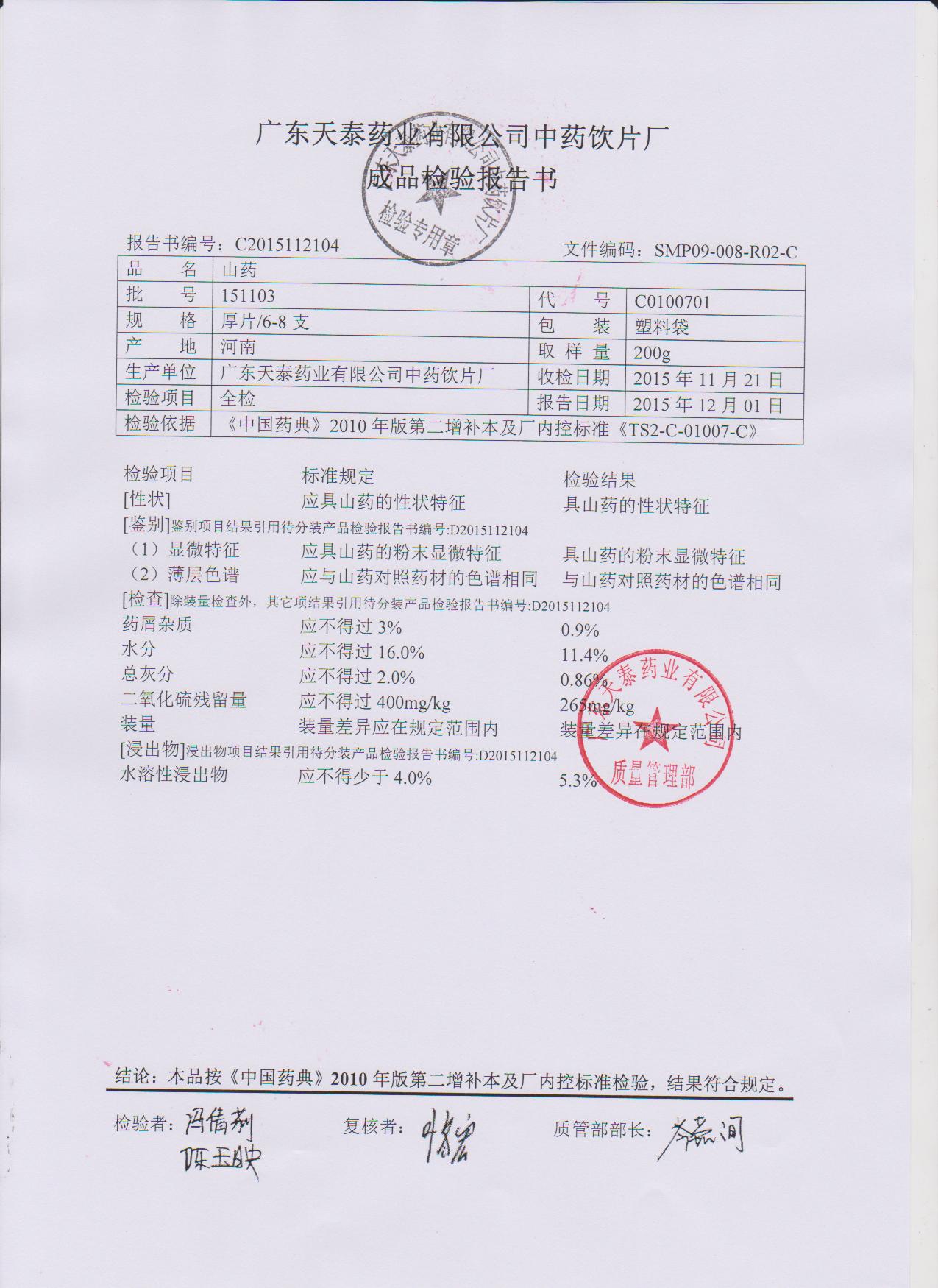 药检报告