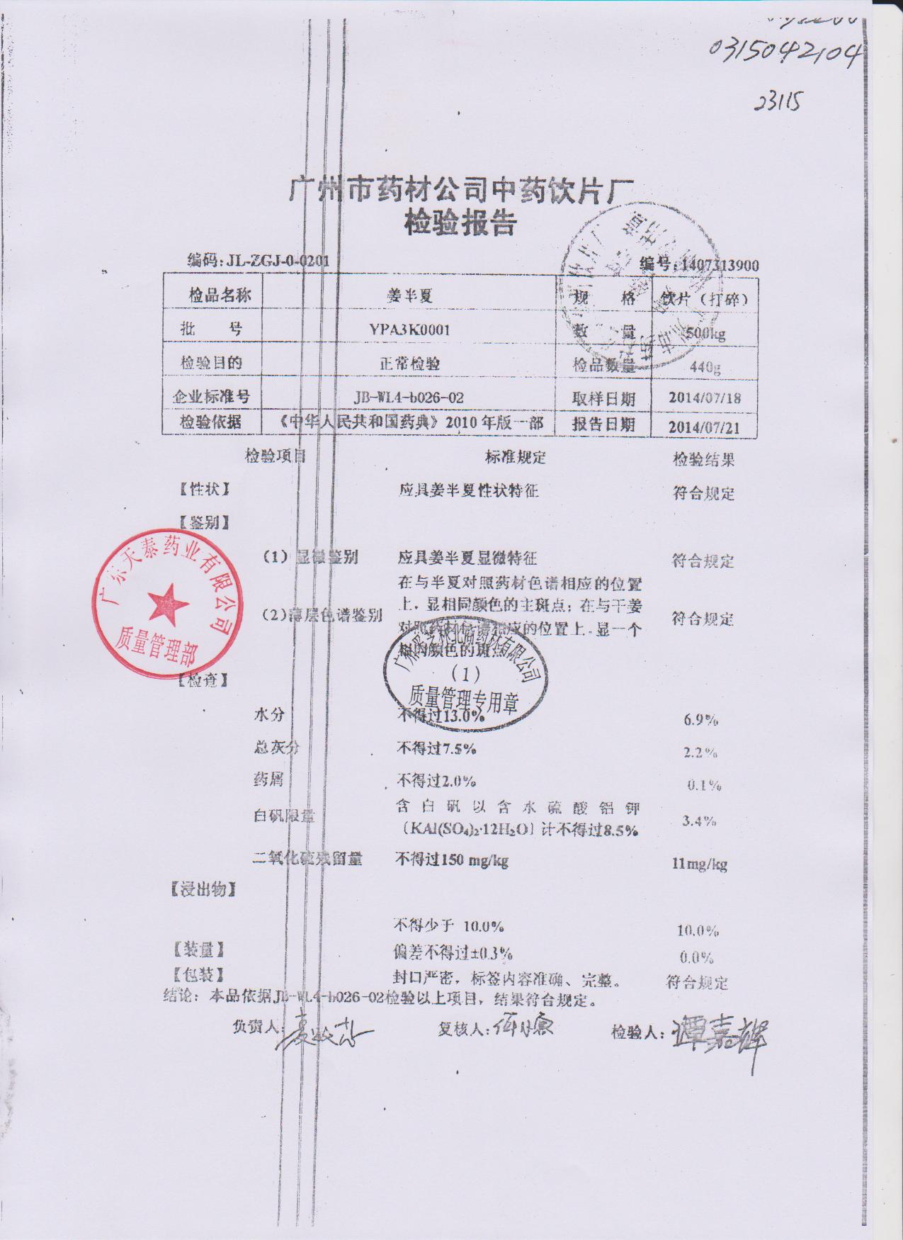 药检报告