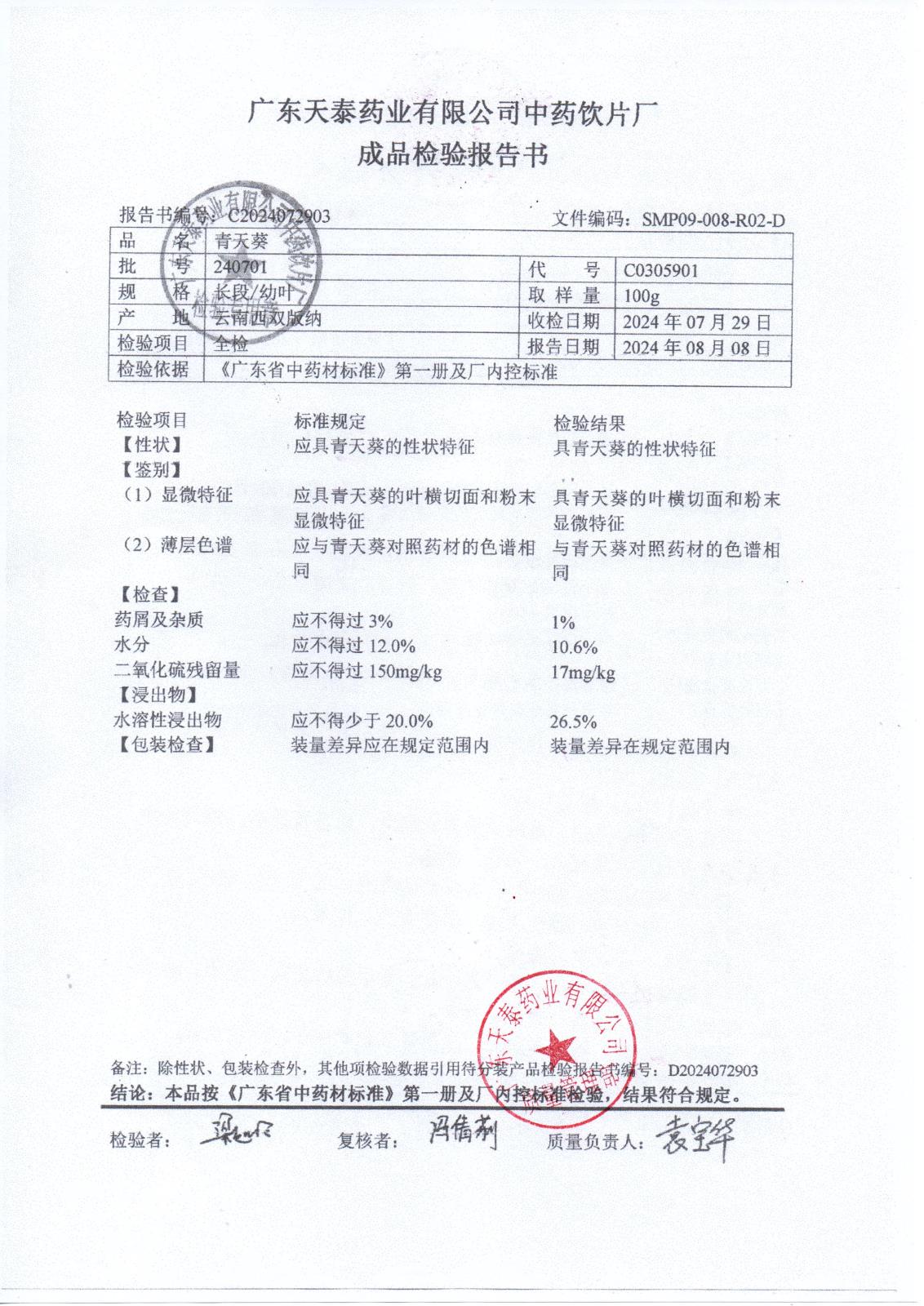 药检报告