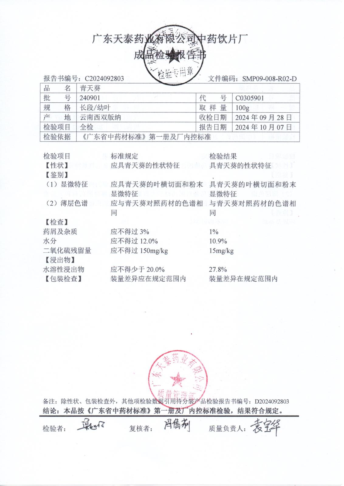 药检报告
