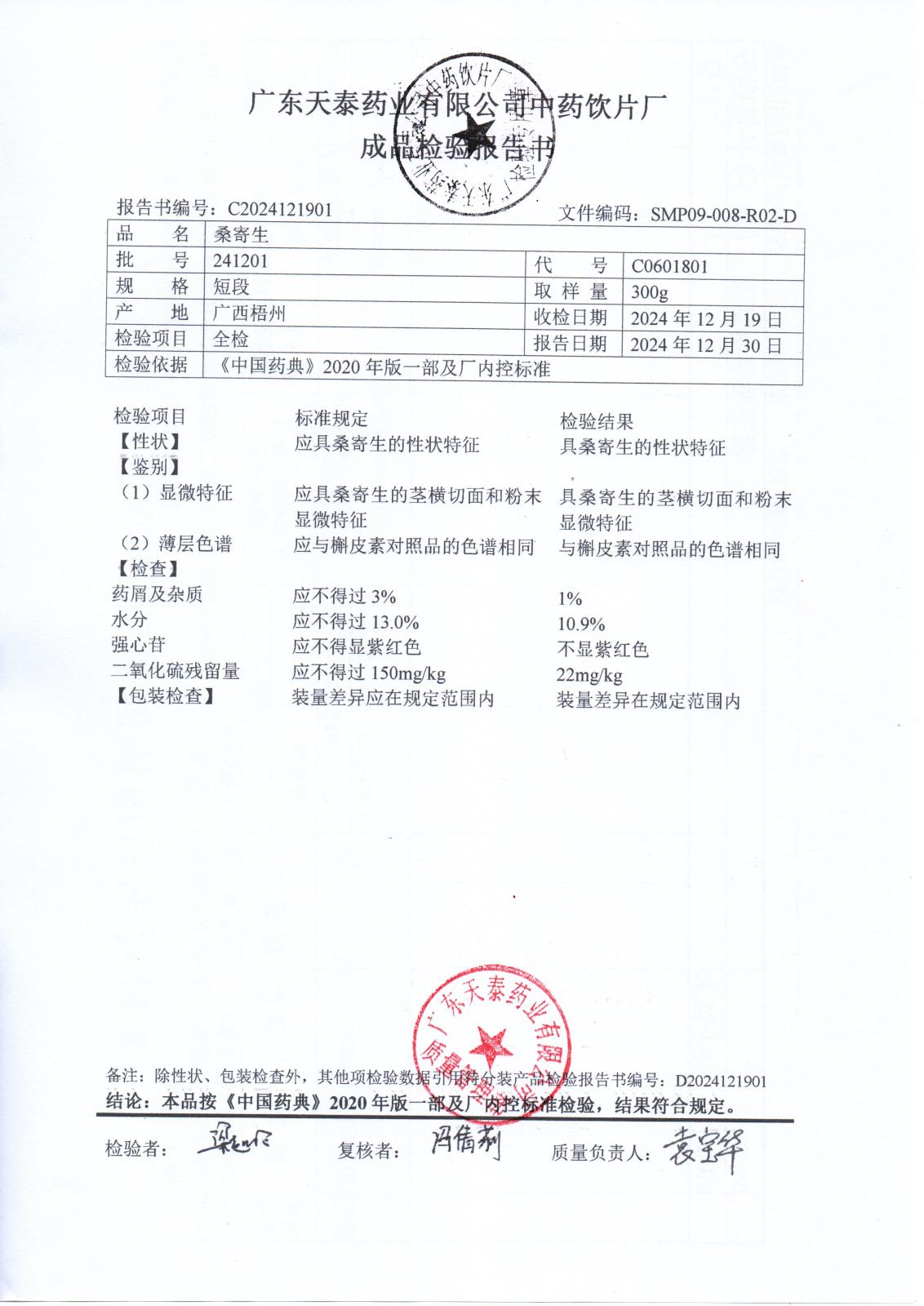 药检报告