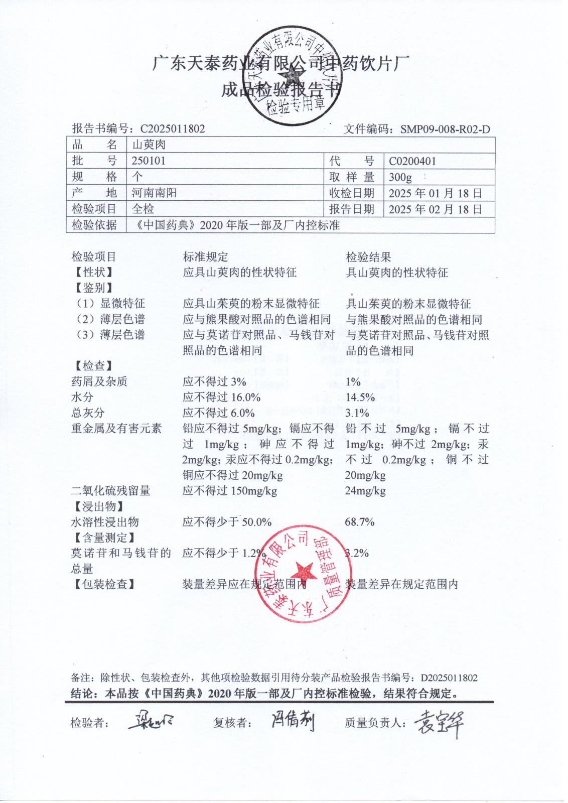 药检报告