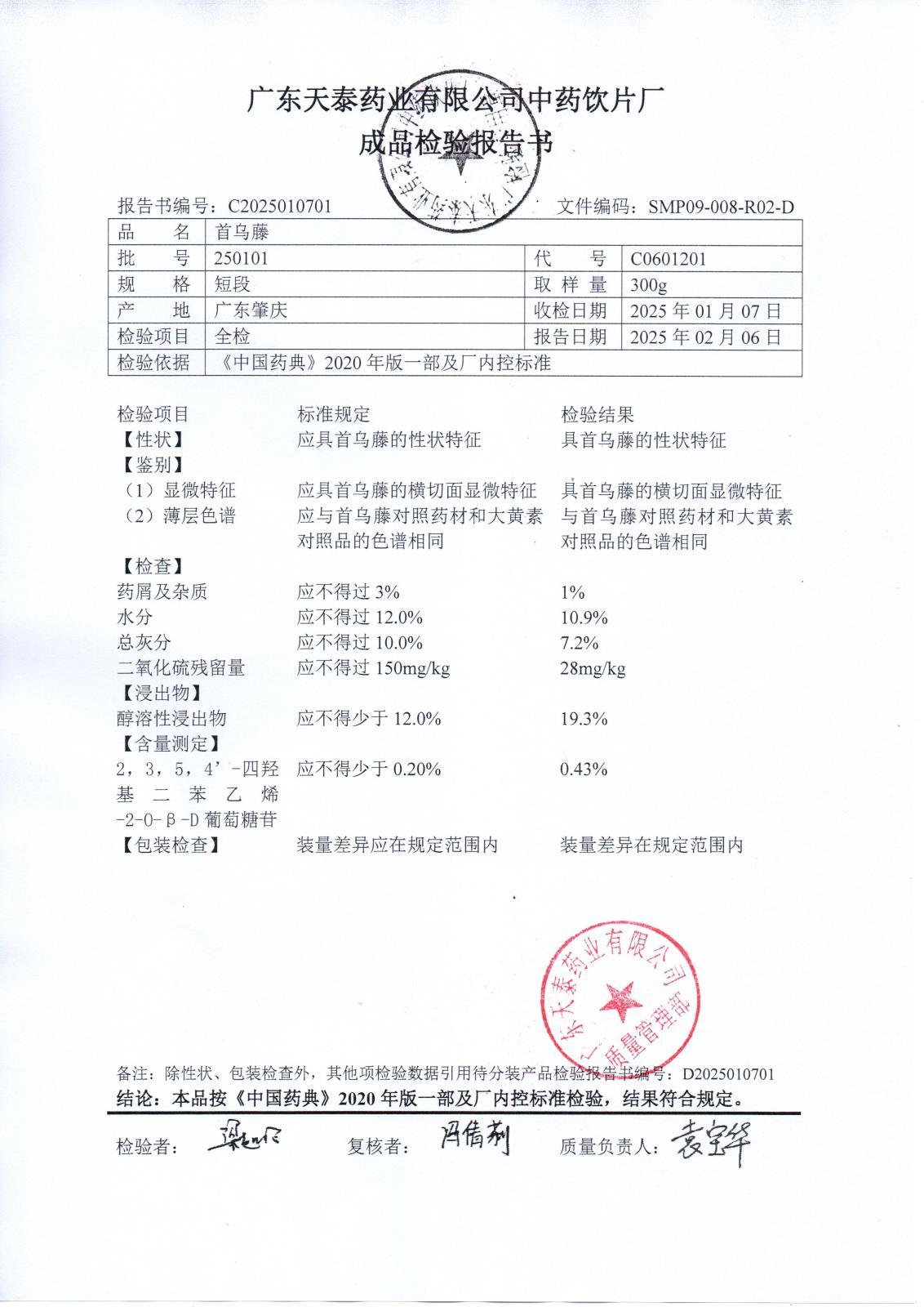 药检报告