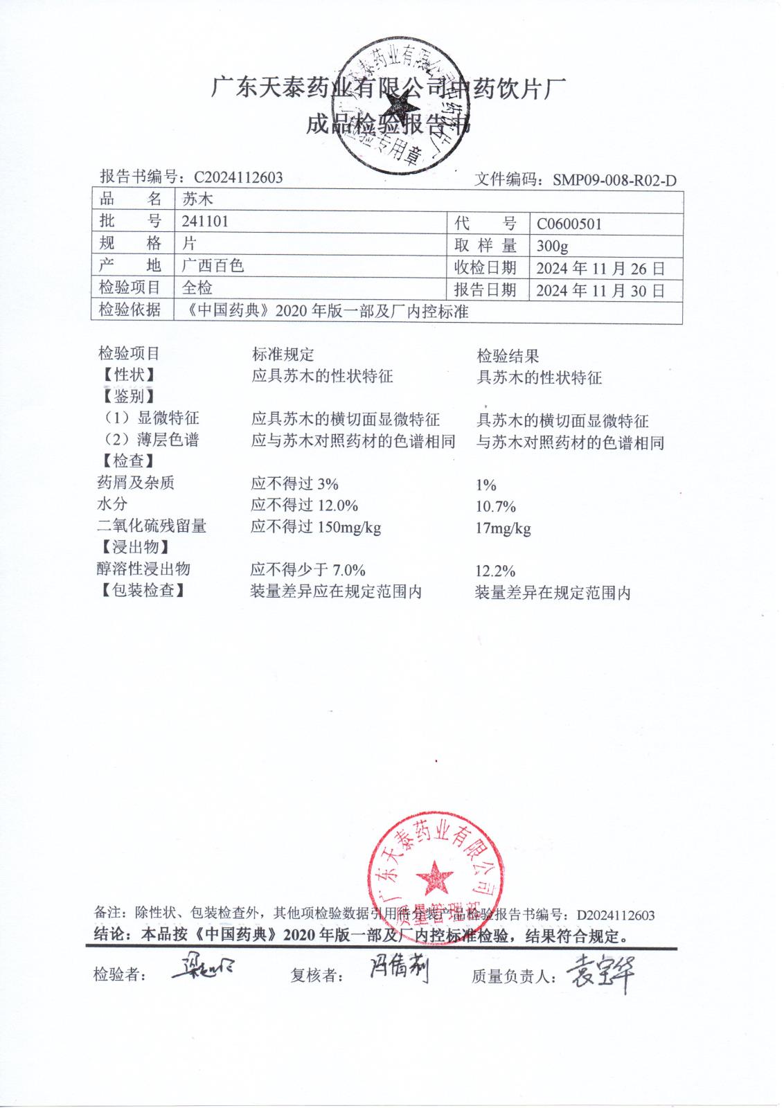 药检报告