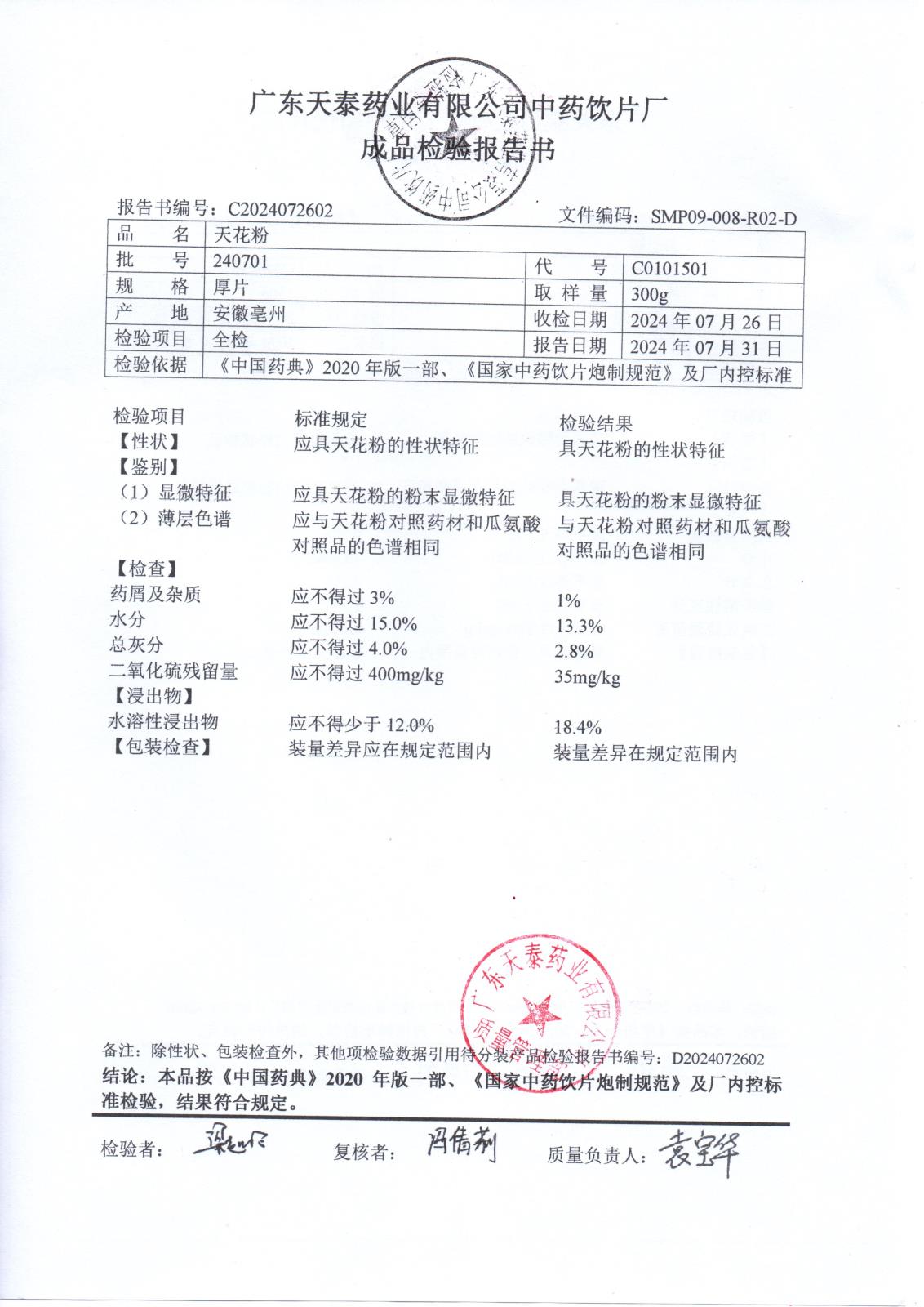 药检报告