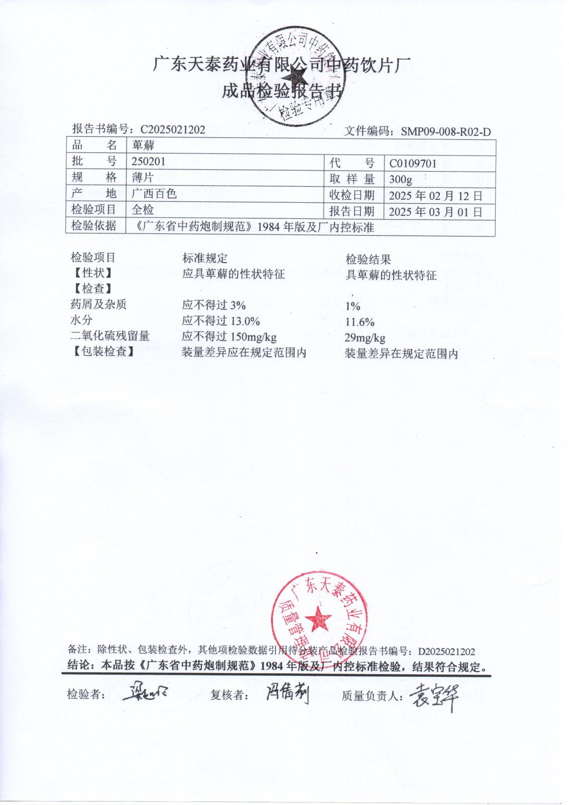 药检报告