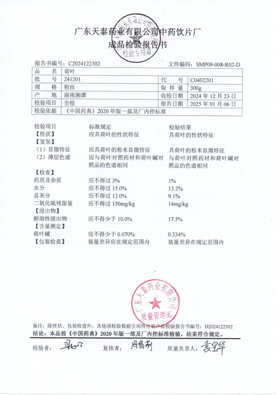 药检报告
