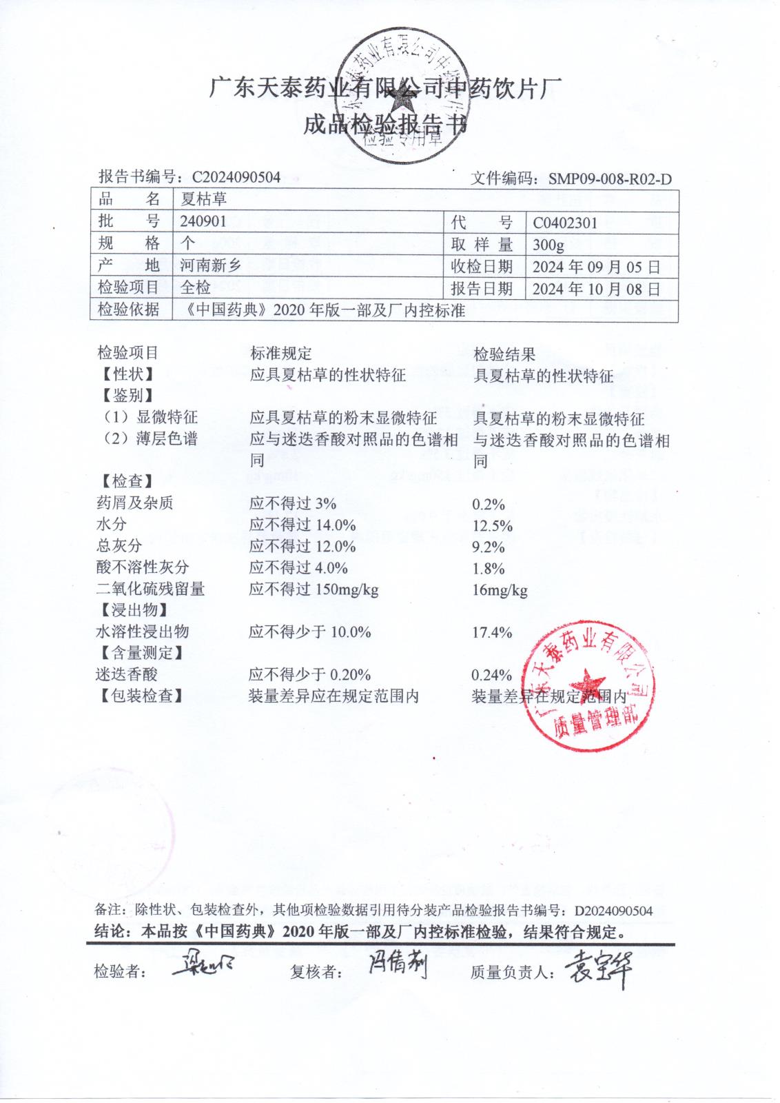 药检报告