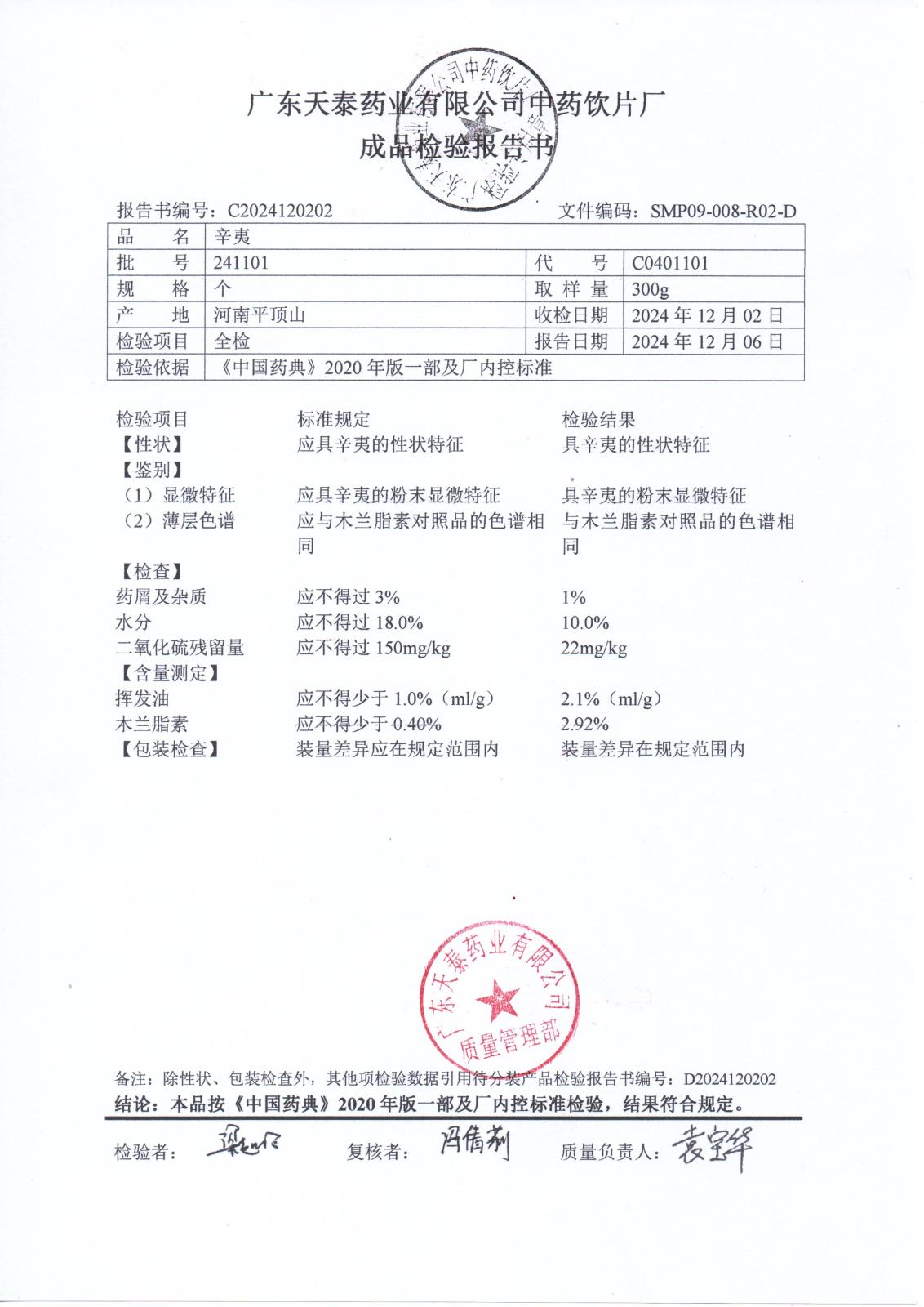 药检报告