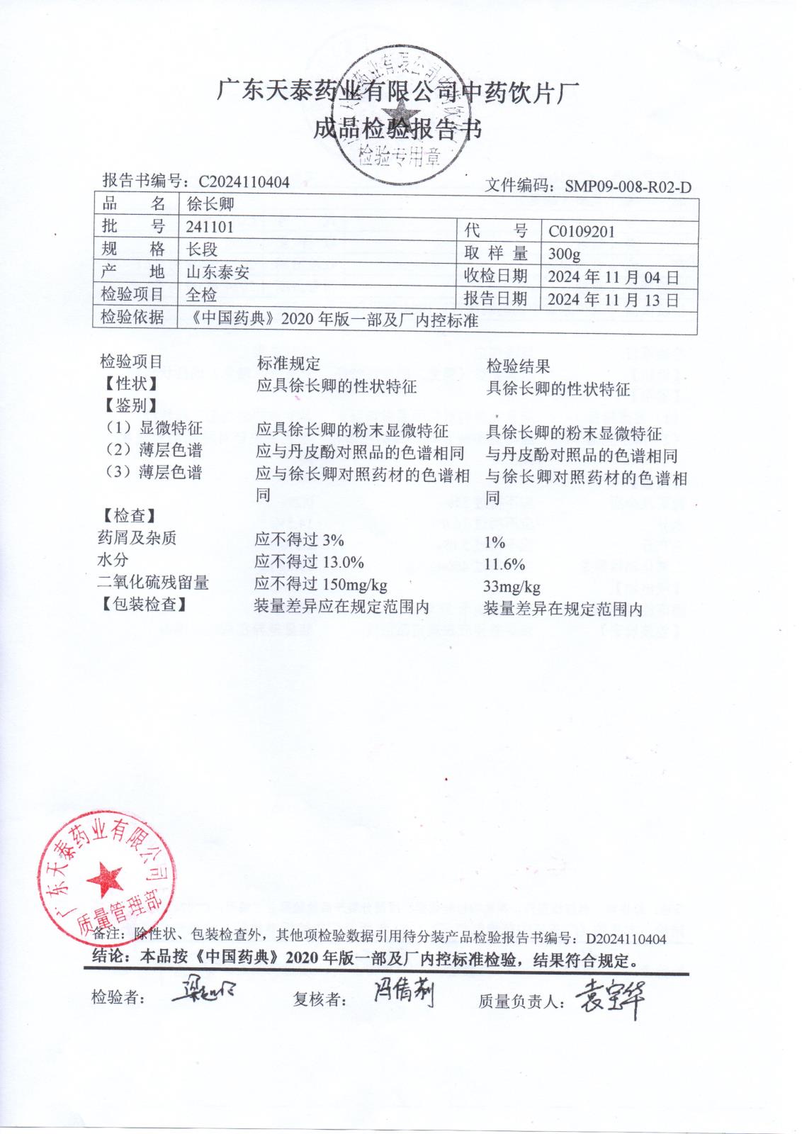 药检报告