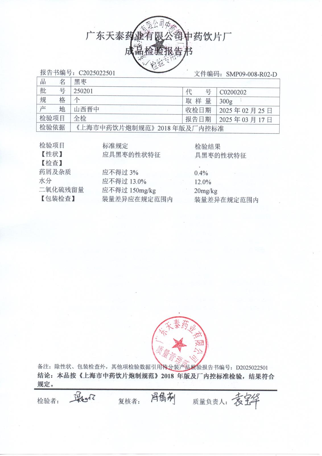 药检报告
