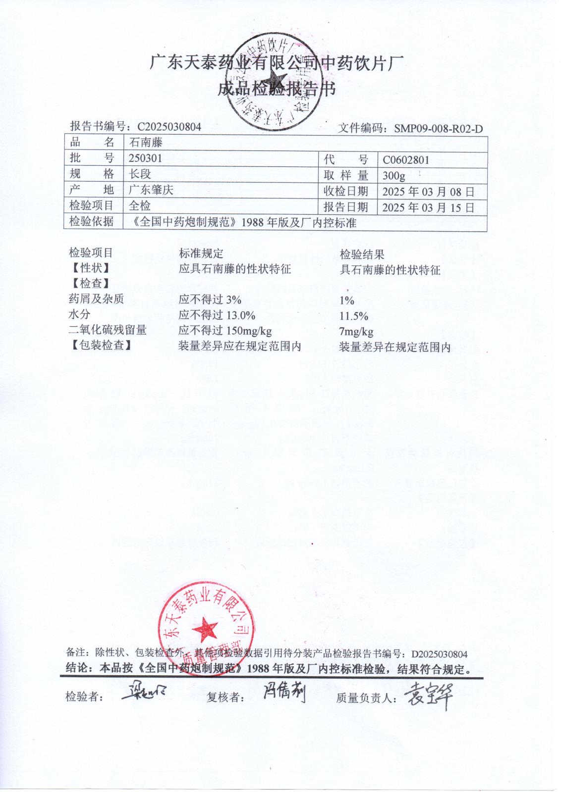 药检报告