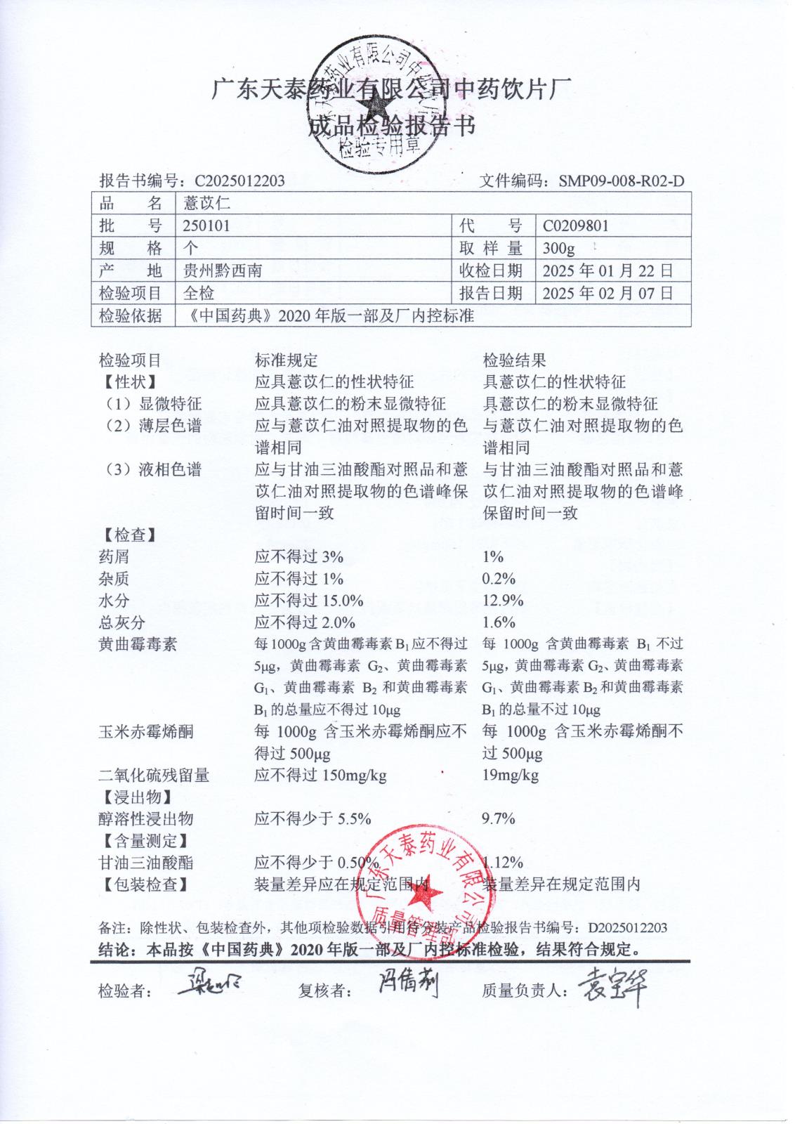 药检报告