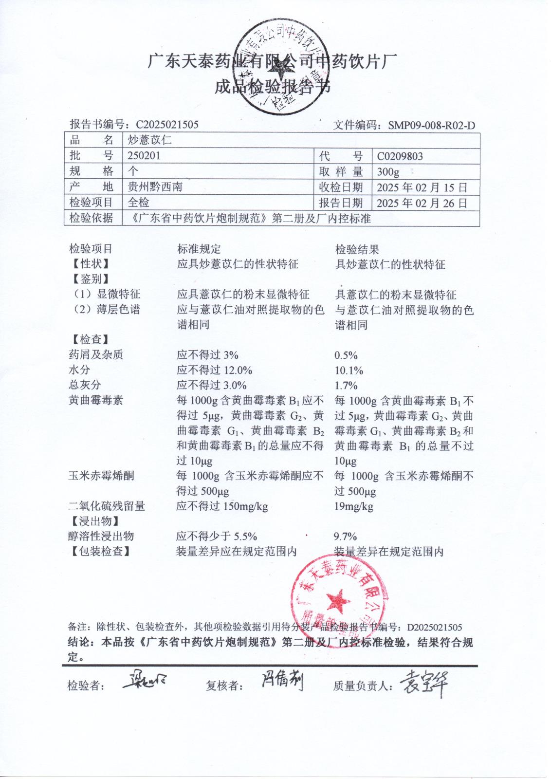 药检报告