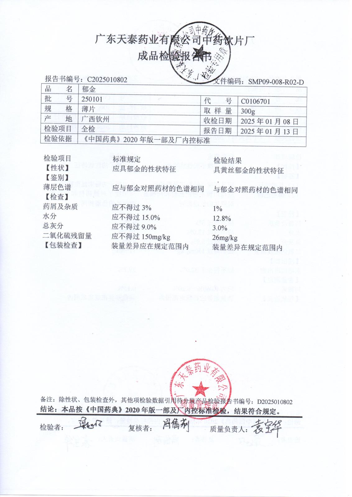 药检报告