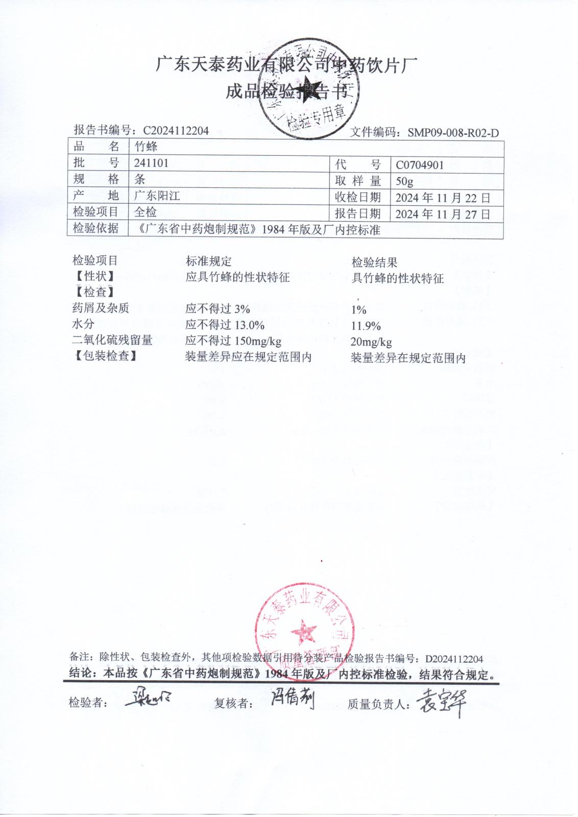 药检报告