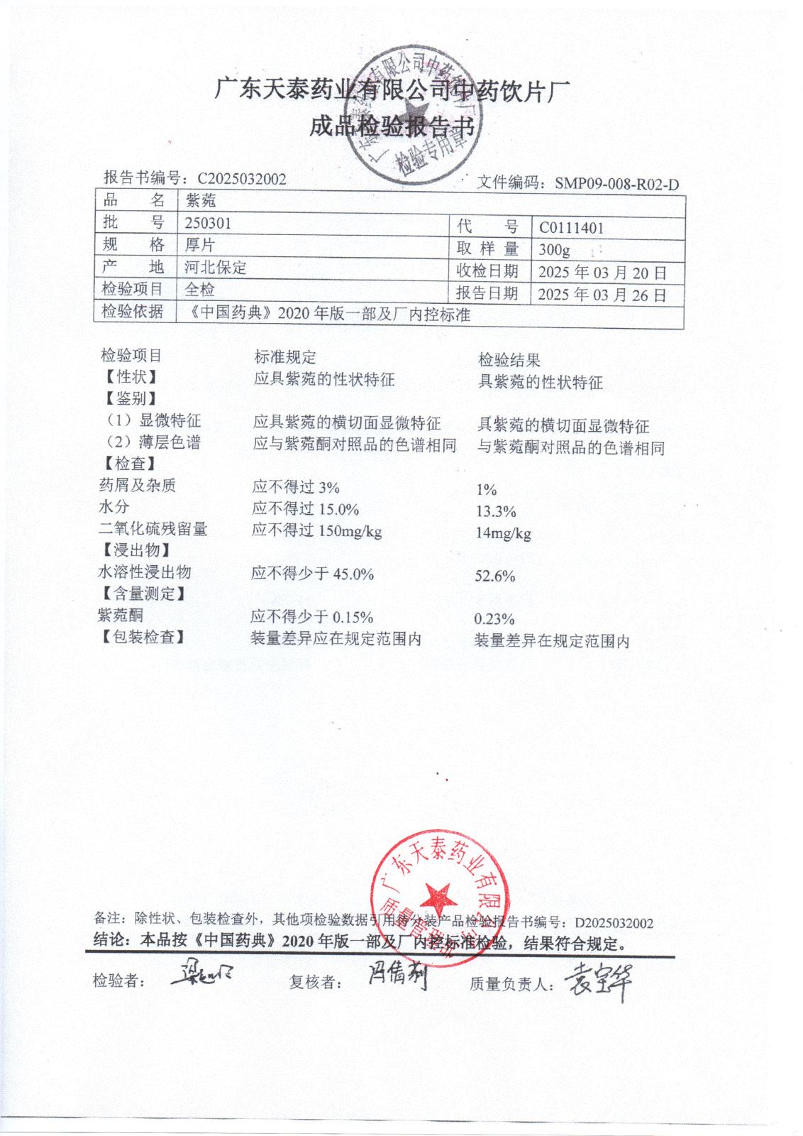 药检报告