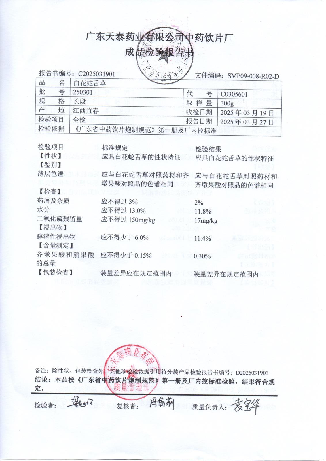 药检报告