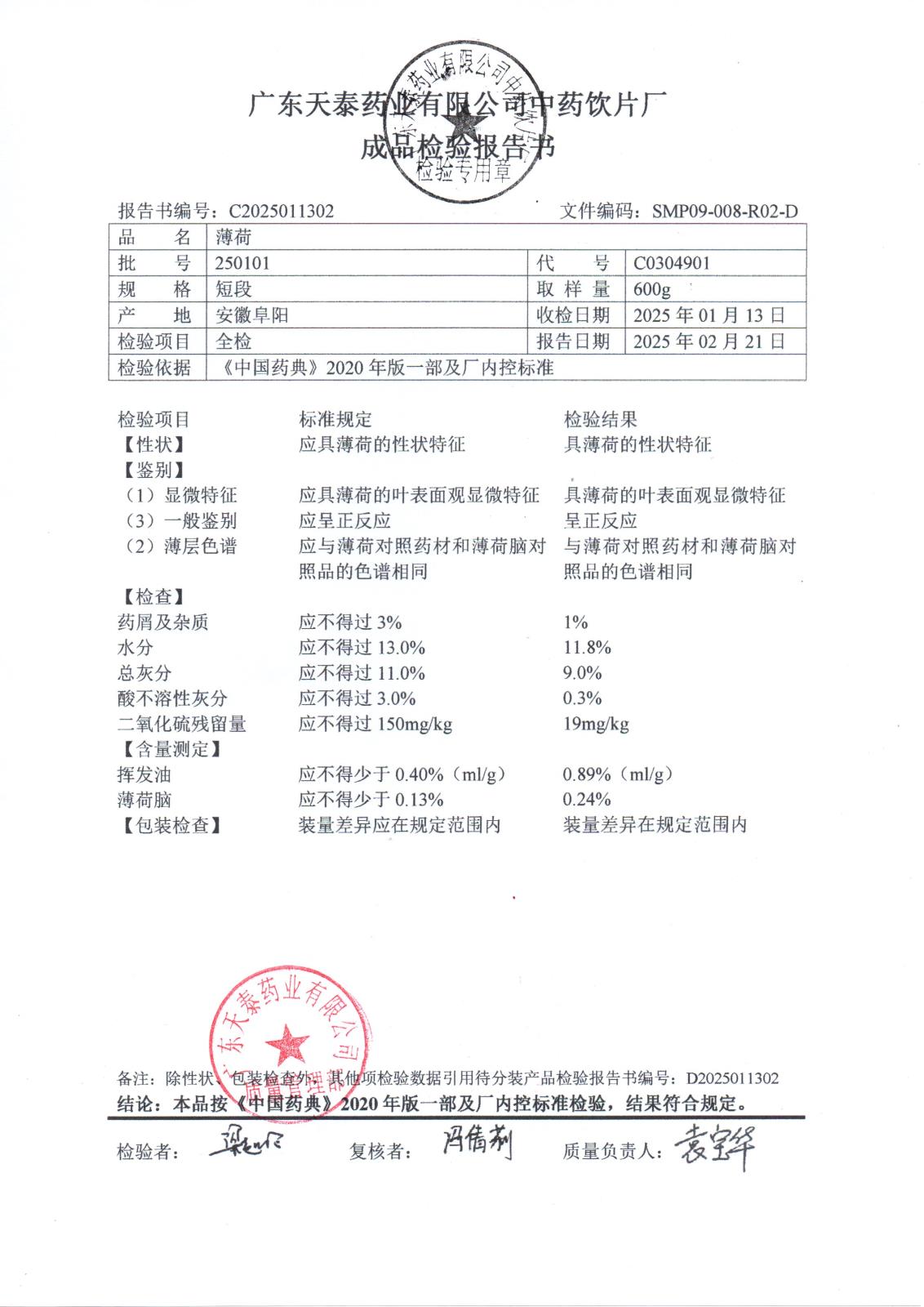 药检报告