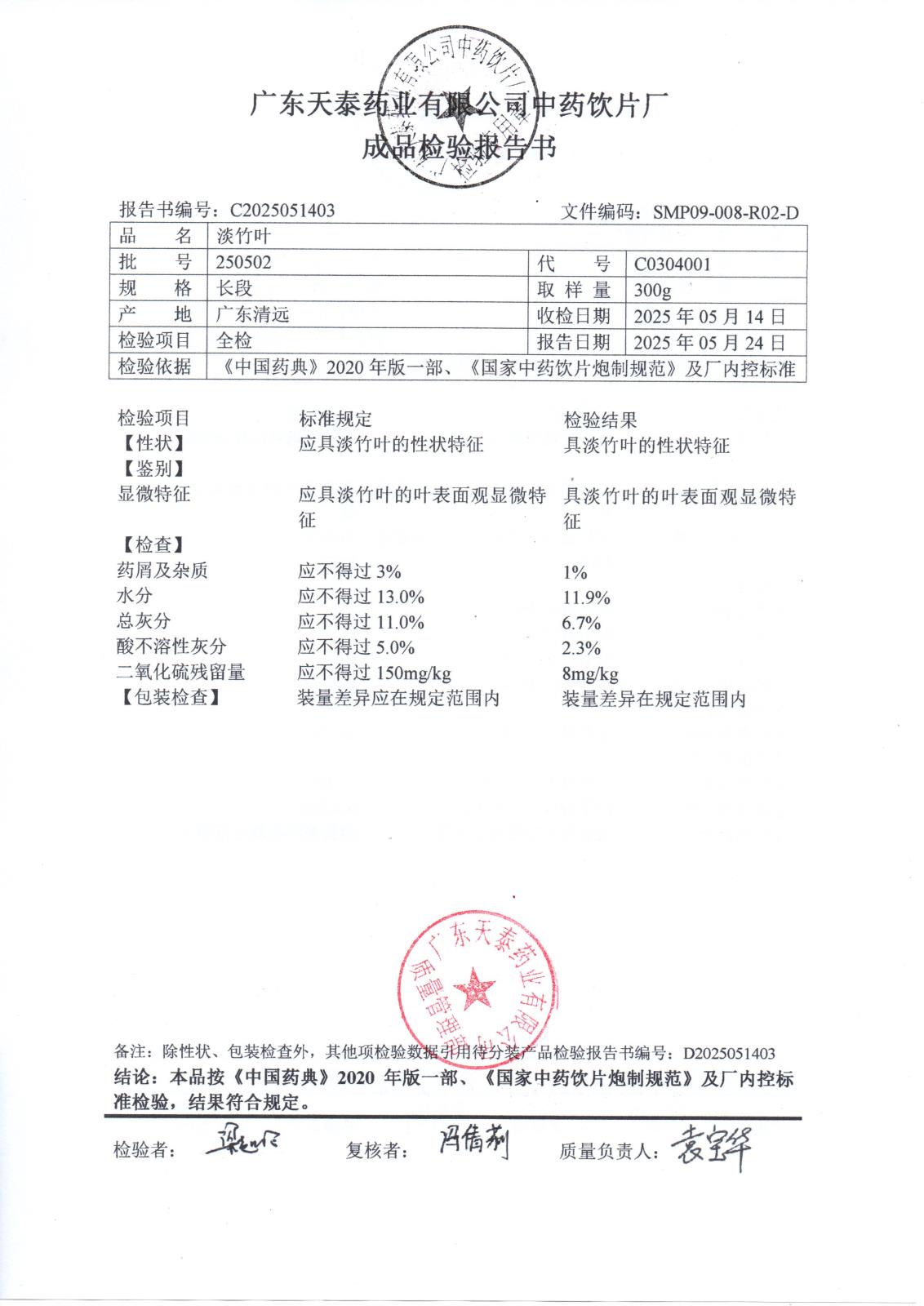 药检报告