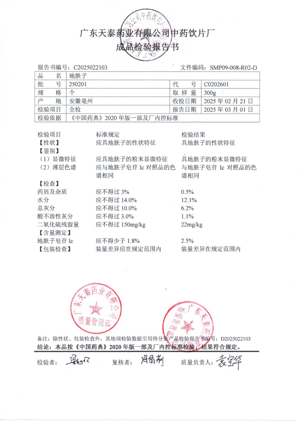 药检报告