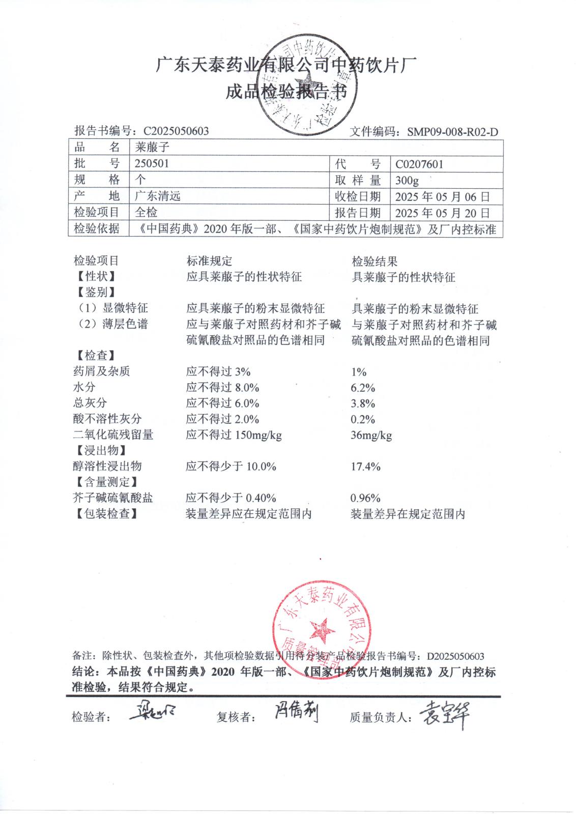 药检报告