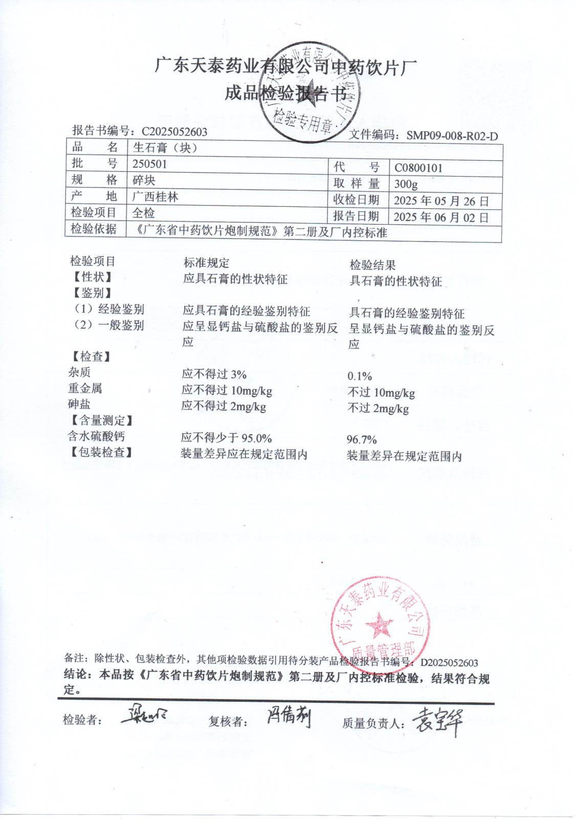 药检报告