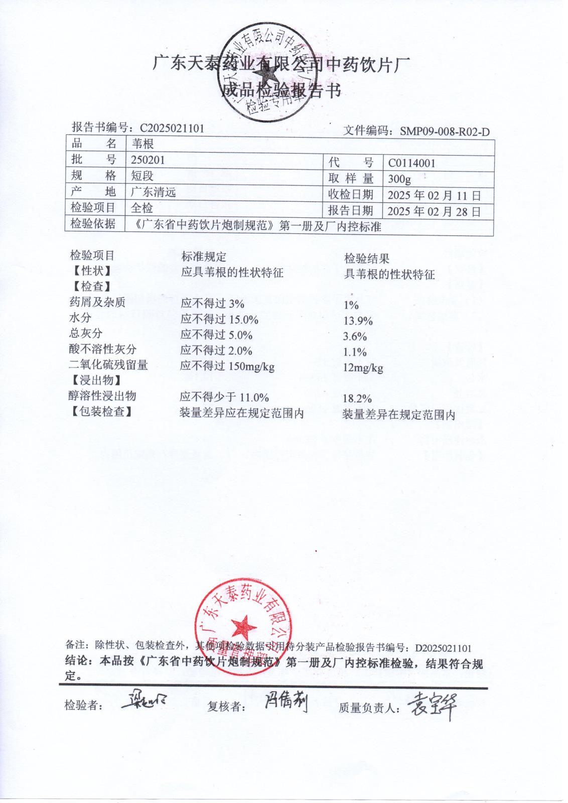 药检报告