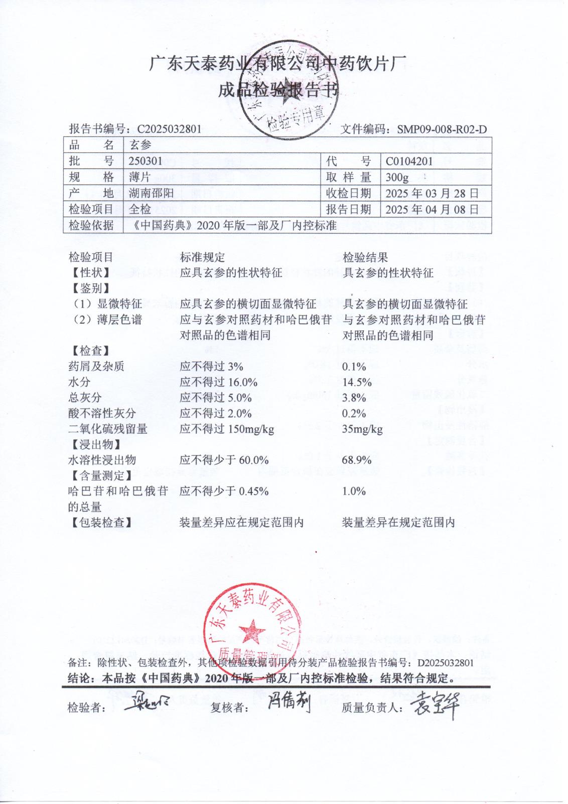 药检报告
