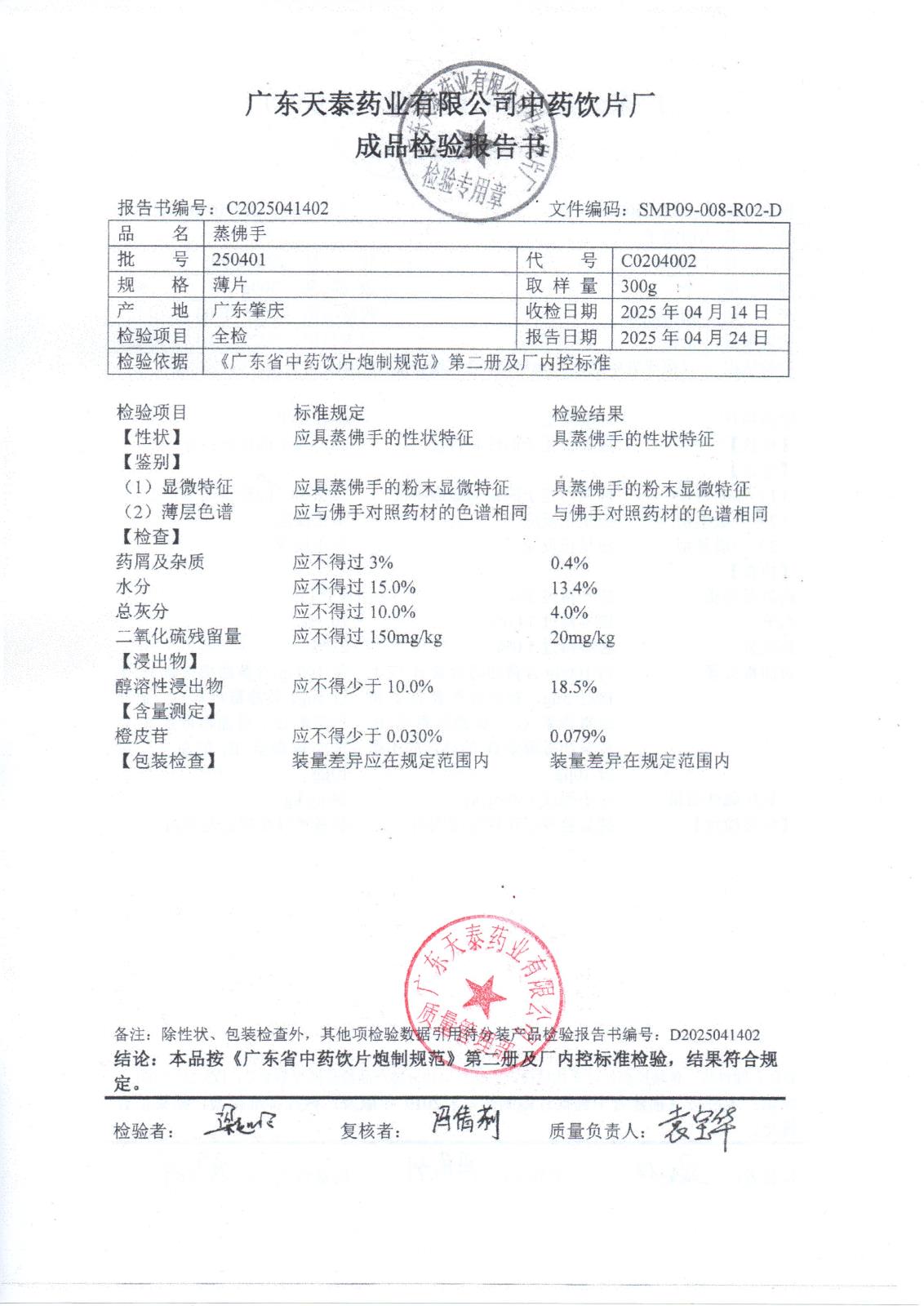 药检报告