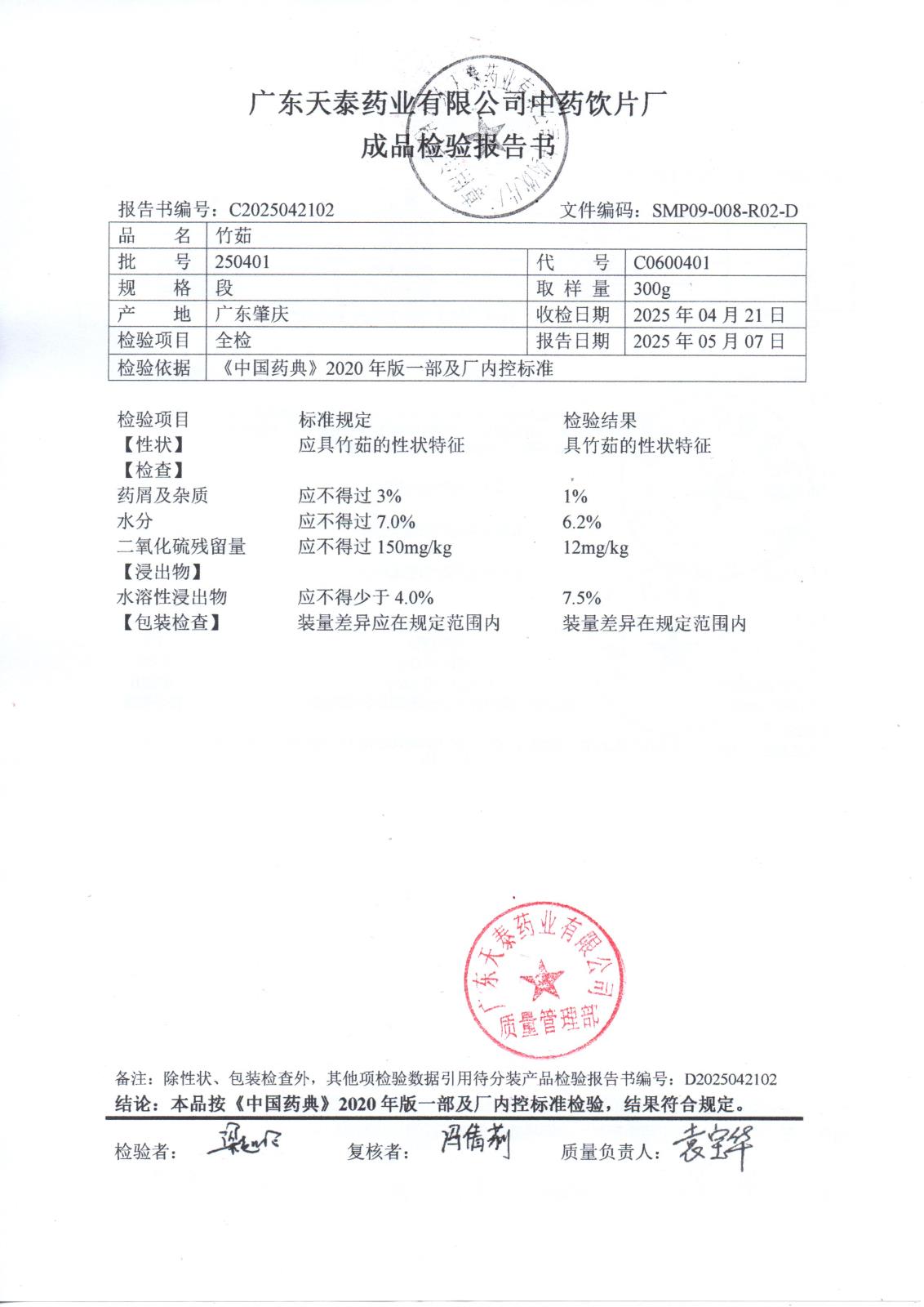 药检报告