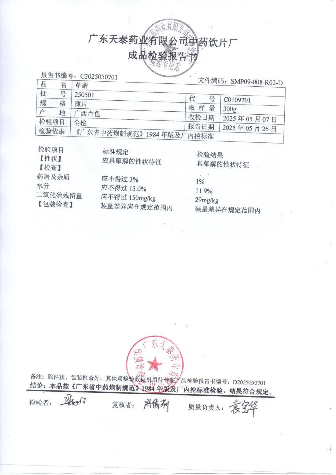 药检报告